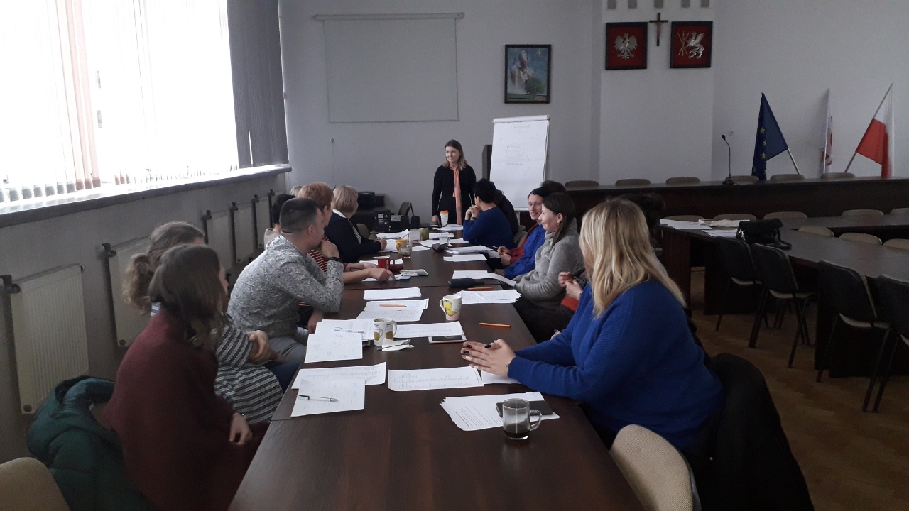 W dniu 4 grudnia 2019 r. o godzinie 10.00 w Starostwie Powiatowym w Tomaszowie Lubelskim odbyły się warsztaty o tematyce „Komunikacja a skuteczność w pracy socjalnej”. Zajęcia prowadził psycholog Ośrodka Interwencji Kryzysowej w Tomaszowie Lubelskim, Marta Dudzińska. Celem spotkania było wzmocnienie umiejętności konstruktywnej komunikacji interpersonalnej w obszarze konstruowania komunikatów zwiększających efektywność pracy z klientami jednostek pomocy społecznej oraz wzmocnienie świadomości pracowników odnośnie przyczyn utrudniających proces komunikacji. W zajęciach udział wzięło 16 specjalistów służb społecznych z powiatu tomaszowskiego. Wszystkim dziękujemy za aktywny udział w spotkaniu.