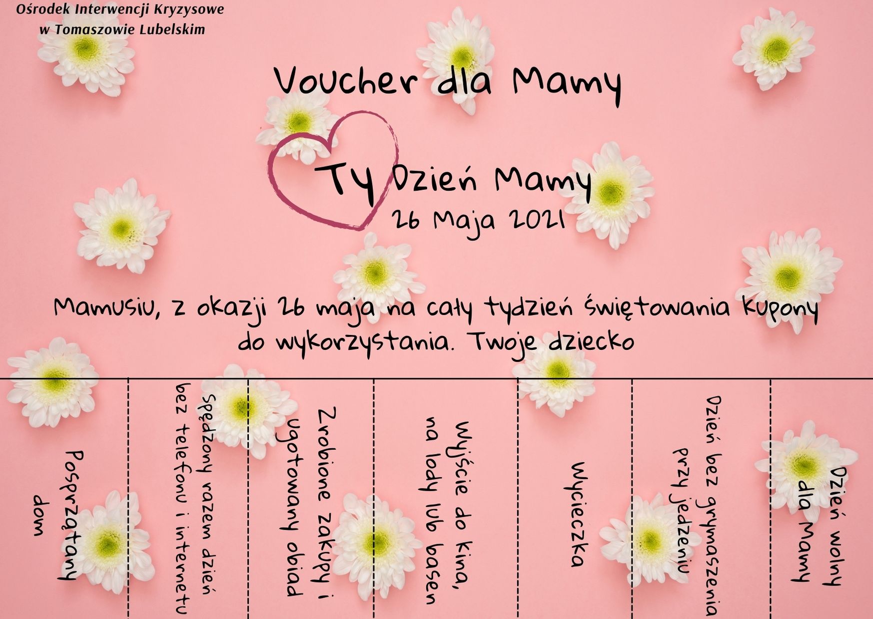 26 maja obchodzimy Dzień Mamy. Ośrodek Interwencji Kryzysowej wszystkim mamom z okazji ich święta życzy spełnienia marzeń, chwil wytchnienia, słonecznych uśmiechów, radości życia i zadowolenia z pociech!