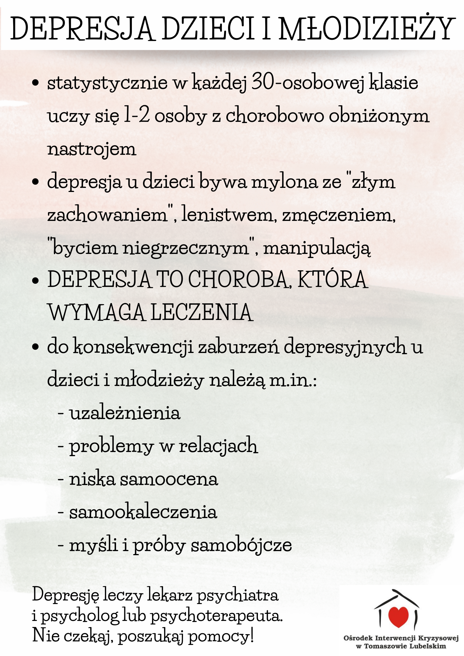 Dzień walki z depresją 2022-02-23 przez oik Z okazji obchodów dnia walki z depresją przypominamy, że depresja to nie wybór ani nie wstyd. Depresję można i należy leczyć. Chorują na nią także dzieci i młodzież. FacebookShare on XLinkedInWhatsAppEmailCopy Link