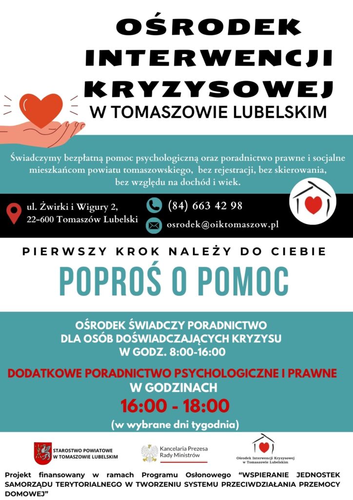 Pierwszy krok należy do ciebie – Poproś o pomoc 2024-08-062024-07-23 przez oik Projekt finansowany w ramach Programu Osłonowego „Wspieranie Jednostek Samorządu Terytorialnego w Tworzeniu Systemu Przeciwdziałania Przemocy Domowej”. FacebookShare on XLinkedInWhatsAppEmailCopy Link