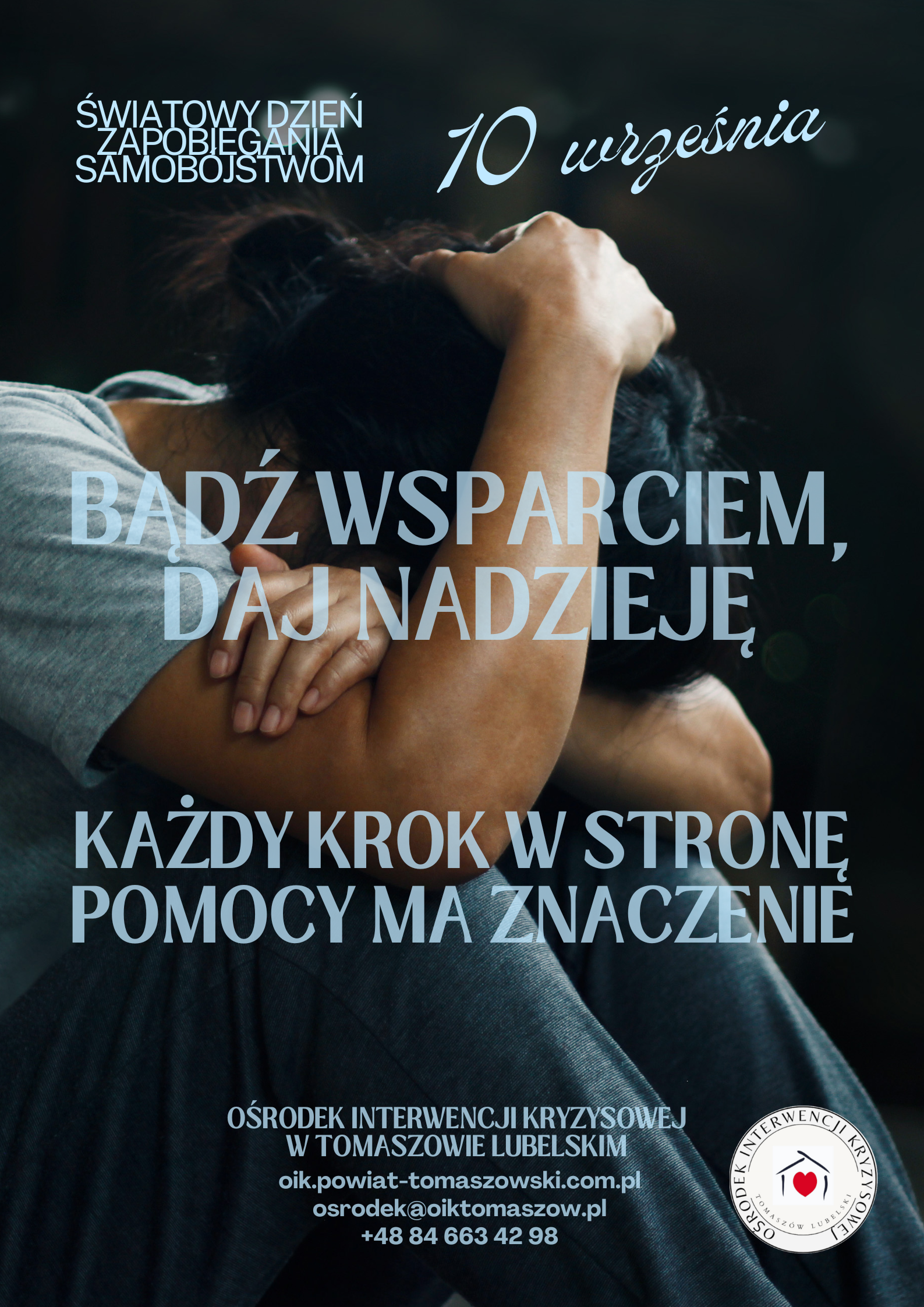 10 września obchodzimy Światowy Dzień Przeciwdziałania Samobójstwom – dzień, w którym zwracamy uwagę na znaczenie zdrowia psychicznego i wsparcia dla osób w kryzysie. Każdego roku tysiące ludzi na całym świecie traci życie z powodu samobójstw. Jest to problem, który często rozgrywa się w ciszy, ale jego skutki dotykają całe społeczności. Jeśli Ty lub ktoś z Twoich bliskich zmaga się z myślami samobójczymi, pamiętaj, że rozmowa może uratować życie. Warto sięgnąć po wsparcie. W naszym Ośrodku Interwencji Kryzysowej oferujemy bezpłatną pomoc psychologiczną, aby wspierać osoby w najtrudniejszych chwilach. Nie bój się prosić o pomoc – to pierwszy krok ku zdrowiu.