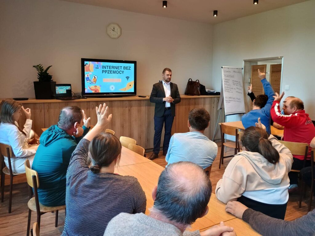 W dniu 23.09.2024r. pracownicy Ośrodka Interwencji Kryzysowej w Tomaszowie Lubelskim przeprowadzili w Warsztacie Terapii Zajęciowej w Muratynie spotkanie szkoleniowe na tematy: „Profilaktyka zachowań przemocowych” oraz „Cyberprzemoc – zagrożenia w sieci”. Celem zajęć było między innymi pogłębienie świadomości w obszarze zjawiska przemocy, w tym cyberprzemocy.