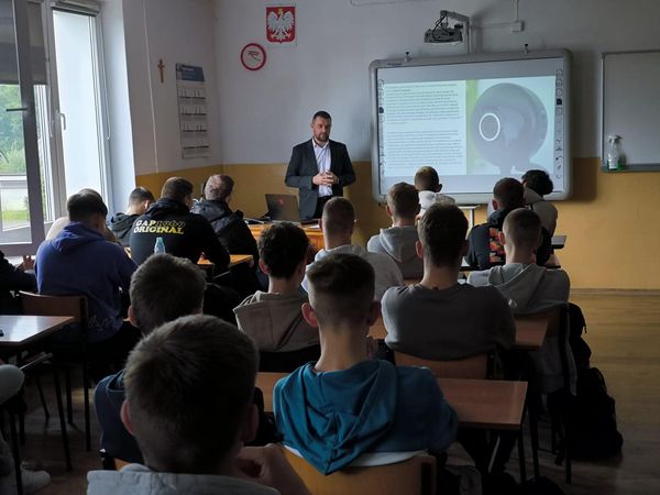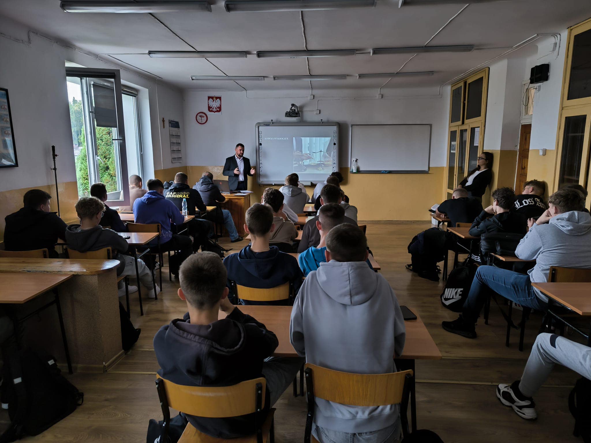 Spotkanie szkoleniowe z zakresu aspektów prawnych związanych z cyberprzemocą w Zespole Szkół Techniczno-Motoryzacyjnych im. Jarosława Dąbrowskiego w Tomaszowie Lubelskim