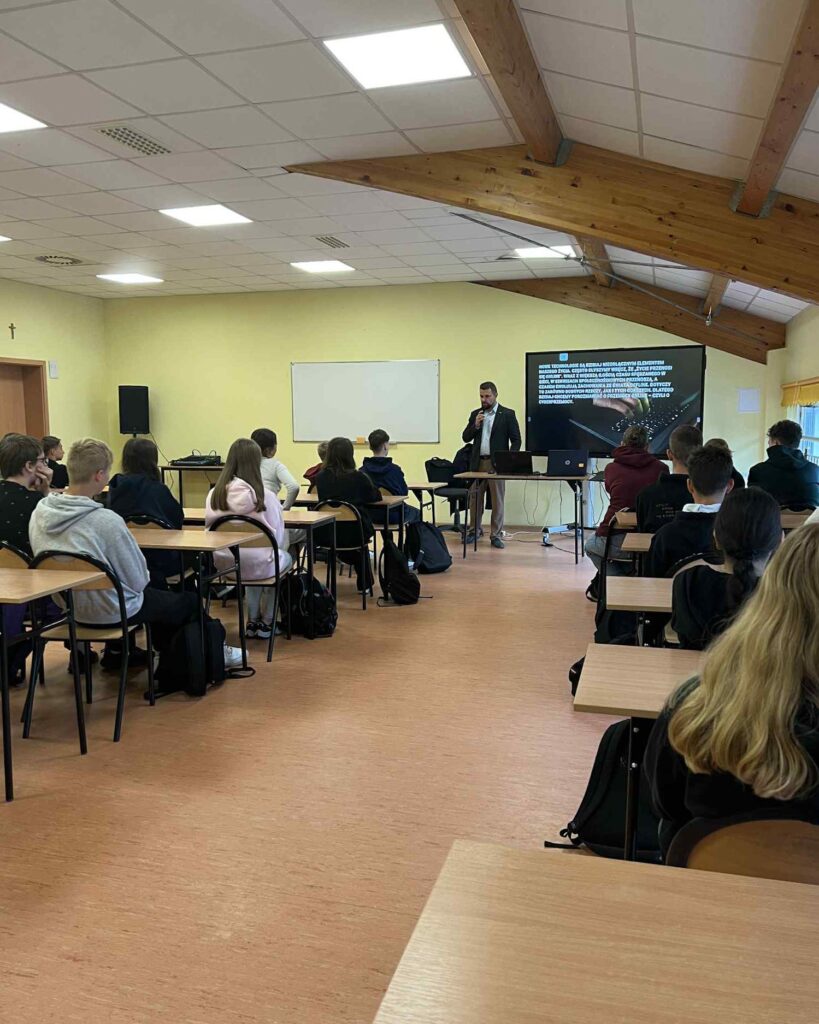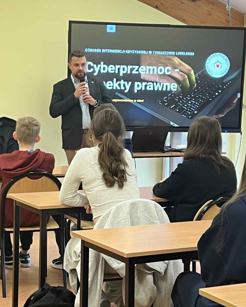 24 września 2025 r. w II LO im. gen. W. Sikorskiego w Tomaszowie Lubelskim odbyło się szkolenie „Cyberprzemoc – aspekty prawne” z udziałem 50 uczniów. Spotkanie prowadził Kierownik OIK – Daniel Knap, a młodzież miała okazję poszerzyć wiedzę o zagrożeniach w sieci, prawnych konsekwencjach cyberprzemocy oraz możliwościach uzyskania pomocy. II Liceum Ogólnokształcące w Tomaszowie LubelskimPowiat Tomaszowski