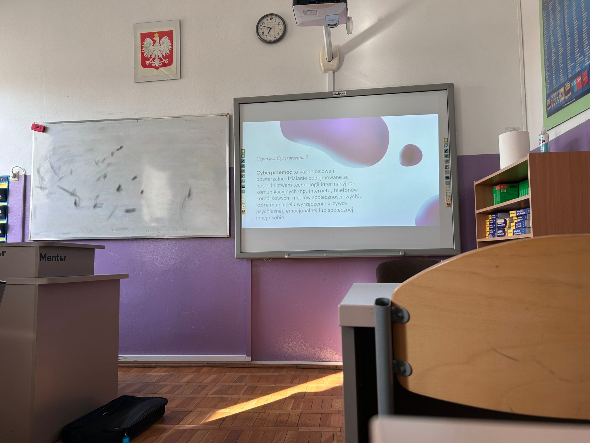 Podczas zajęć młodzież klas 7c i 7e pogłębiała swoją wiedzę o rodzajach cyberprzemocy, sposobach reagowania oraz miejscach, gdzie można szukać pomocy. Uczestnicy wspólnie wypracowywali skuteczne sposoby radzenia sobie z przemocą w Internecie.
